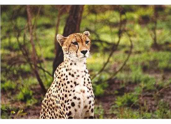 I snapped this photo of a lioness who decided to hop up on the back of our vehicle and look me straight in the eye. We were within inches of each other and I still can't believe I was dumb enough to take a picture before I slowly ducked for safety. I had to wait to get back to the U.S. to develop this photo and I was shocked at how perfectly it came out. What a beauty, and what a look in her eye. I think she's saying, "Don't even think of getting closer to my babies..." I totally appreciate her attitude. |